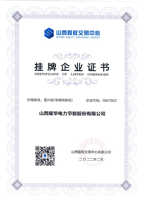山西耀華電力節(jié)能股份有限公司是國內第一家提出谷期電集中儲能蓄能的高新技術企業,其主營業務:電力市場購售電交易運營、電力設施安裝檢測運維、 低谷電采暖設備的研發(fā)、生產、安裝、銷售及運行服務于一體。公司成立于1996年,落座于山西省太原市,現有股權代碼在晉興板上市的專精特新企業,中國建設科技自主創(chuàng)新優(yōu)勢企業,山西省節(jié)能協會理事單位,擁有自主知識產權,獲得國家多項專利,參編了電采暖國家標準(JC/T60008-2021)和主編了山西省地方標準(DBJ04/T291-2012)。擁有國家發(fā)明專利11項,軟件著作權6項。其中“大數據遠程集中監(jiān)控運維服務平臺”早在2019年就在河北、天津、山西等多個煤改電地區投入試用,節(jié)能效果非常顯著,運維方便快捷,用戶滿意。